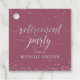 These elegant and festive retirement party favour tag feature silver (simulated foil) confetti with matching letters that say "Retirement Party" in a beautiful script font. The background colour is pink, but can be changed to any colour of your choice.