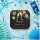 Retirement party paper plates featuring champagne glasses, balloons and gold glitter, gold on black. Faux gold foil on the the back of the invite.