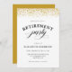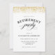 This elegant retirement party invitation features a classy design accented with beautiful script and gold glitter confetti on a clean white background.
