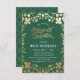 This classy retirement party 3.5" x 5" (small) invitation has a vintage feel and features an illustrated floral border and the words "Retirement Celebration" in a gold colour (simulated gold foil). The background shown is a Kelly green, but can be customised to any colour you choose. The back of the invite includes a gold colour quatrefoil pattern with a matching green background that can also be swapped out. The text is customisable for your special event.