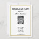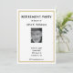 Simple Modern Retirement Party Invitation with a gold frame around black on white fully customisable text in a nice font. Replace the placeholder image with your custom photo of the retiree. No frills classic style invitation.