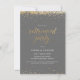 This elegant and festive retirement party invitation features gold (simulated foil) confetti with matching letters that say "Retirement Party" in an beautiful script font. The background colour is a shade of grey, but can be changed to any colour of your choice. Customise the invite with your own information - an easy and simple way to create a personalised card. The back side of the card features a matching gold dotted line pattern - with a white background that can be customised to any colour of your liking. A simple and elegant way to invite guests to celebrate a retirement.