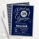 Retirement party invitation for women or men. Elegant invite card in navy with faux glitter silver. Features stylish typography script font. Can be personalised into any year. Please message me if you need further customisation.