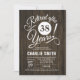 Rustic retirement party invitation for men or women. Elegant invite card with dark brown wood pattern. Features stylish vintage typography script font. Can be personalized into any year.