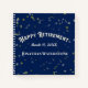 Retirement party sign in guest book with the lucky retiree's name, date of retirement and Happy Retirement text. The background design is golden stars on a dark blue background.