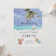 A breezy beach retirement party invitation, featuring a tropical beach theme with palm tree, hanging chair and cocktail. A theme about anticipating travelling going to warm places and basking in the sun, and of course enjoying a cocktail or two!