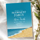 Retirement party with sunny beach and sea illustration with blue sky. Perfect for wishing a happy retirement or a happy vacation!