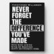 A bold and striking retirement or appreciation plaque for emergency services, firefighters, doctors, pastors etc. Perfect for a 'congratulations on your retirement' or thank you gift. This great "never forget the difference you've made" saying is featured in a block white typography font on a black background, perfect for male gifting. Can be personalised with a name and date - or other message.
