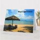 Photographic card of a beach umbrella and lounge seats - perfect for holidays, farewells & retirements - customise front & inside message.