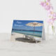Photographic card of a beach umbrella and lounge seats - perfect for holidays, farewells & retirements - customise front & inside message.