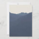 This retreat to the mountains formal wedding invitation card is perfect for a modern wedding. The design features a serene blue watercolor mountain range with a forest of evergreen trees in the foreground.