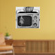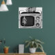 Transform your space with this striking mid-century modern wall art featuring a surreal 1950s portable television graphic. This high quality monochrome poster captures the essence of vintage broadcast history with a clever artistic twist that fits perfectly in home theaters, offices, or living rooms. The high contrast black and white imagery highlights the sleek industrial design of the silver screen era, making it a must have for collectors of retro kitsch and antique electronics. Add a touch of sophisticated nostalgia to your decor with this unique conversation piece that celebrates classic media in a bold format.