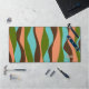 This desk mat features a 1970s style design which boasts a stunning colour palette that is sure to bring a retro vibe to your workspace. The dominant colours featured on this mat are peach, olive green, teal, and dark brown. These colours were carefully selected to evoke the essence of the era and create a visually appealing design. The design showcases abstract wavy stripes that add a touch movement to the overall aesthetic. These stripes are a nod to the artistic trends of the 1970s. To make this desk mat truly unique, there is also the option to include custom text for your name. This personalisation adds a special touch and makes the desk mat feel truly yours.