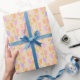 Retro 1970s Folk Art Pastel Pink and Orange Blooms Wrapping Paper
