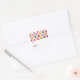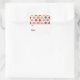 These stick on gift tags have a retro 1970s style with a geometric pattern in red, pink. lime green, orange and green on white. They have a spot for you to write in your own names.