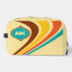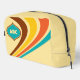 Your monogram with retro flair above 1970's style swooping stripes. The colour palette is turquoise, brown, yellow, orange and harvest gold, as was the fashion.