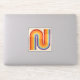 This artwork channels a retro graphic spirit, forming the letter‑like curve with parallel bands of red, orange, yellow, light blue, teal, and purple. The layered arcs flow in harmony, evoking the bold optimism of 1970s design. Set against a soft beige background, the vibrant rainbow palette stands out with clarity and rhythm. The composition balances simplicity and dynamism, creating a timeless visual that feels both nostalgic and modern.