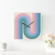 Retro 1970s Style Arched Stripes Geometric Pattern Square Wall Clock
