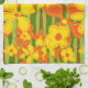 Retro 1970s Yellow Orange Flowers Tea Towel