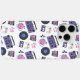 Retro blue and pink Vinyl Records, boomboxes, video gaming and cassette tapes nostalgic phone case.
