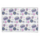 Retro blue and pink Vinyl Records, boomboxes, video gaming and cassette tapes nostalgic pillow case