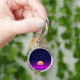 Retro 1980s synthwave glowing neon lights plane with sun and city skyline