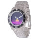 Retro 1980s synthwave glowing neon lights city watch