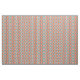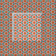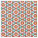 This is a kaleidoscope pattern with the use of vintage colours. Reminiscent of the 3D picture days, this pattern features a cyan blue and a bright red overlapping with each other. There are also shades of mustard yellow and the background is a creamy orange. Shapes in various colours are overlapping creating flower, arrows, lines, and rings. This vintage mixed with modern pattern is a fun and bright way to add some flare to a plain room or outfit.