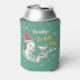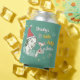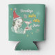 This humourous retro can cooler design includes a vintage-looking woman wearing a Santa hat and holding a martini glass. The text can be personalised with your name or the name of the gift recipient, and says: [Your Name]'s Holly Jolly Juice. The design also includes your monogram on the bottom. The colour scheme is mostly teal, red, yellow and cream. Use the easy template to add your custom text!