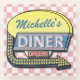 Easily create your own custom, 1950s style diner sign glass coaster with this template. This cool, retro drink coaster has a pink-and-white chequered background with a sign that says "DINER" and "OPEN" in neon shades and space for you to add your own first or last name.