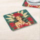 Retro 50s Tropical Christmas Pin-Up Girl Square Paper Coaster