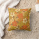 This throw pillow features a colour palette straight out of the 1960s/1970s, with shades of orange, olive green, and mustard yellow.