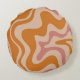 Retro 60s 70s Psychedelic Swirls Orange Pink Round Cushion