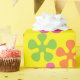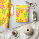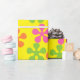 Funky retro flowers on yellow background. Flowers are in hot pink, bright orange and bright green. How fun is this for your next birthday you need wrapping paper for.