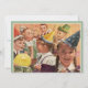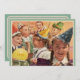 Vintage birthday party scene from 1950 with young fresh-faced school-aged boys and girls in funny hats with noisemakers, balloons, streamers, cake and ice cream. An old-fashioned rotary telephone sits in the foreground. The birthday balloon is printed with the year 1950. Customise it with your party details on the back for a unique one-of-a-kind personalised celebration keepsake memory that will be cherished by family and friends, as they remember happy times of growing up in the forties and fifties. Custom mid-century modern party invitations adapted from an old telephone advertisement adaptation.