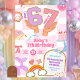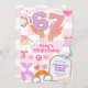 Retro 67 Aesthetic Patch Party Invitation, I Was 6 Now I'm 7 Kids Birthday Invite, Editable Pink Wavy Preppy 7th Birthday Party