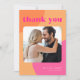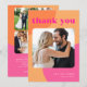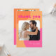 Abstract curvy shapes retro vintage groovy 70s style unique wedding 6 photo collage thank you card with your custom message (pre-printed text template) and bold typography in a vibrant trendy modern hot pink magenta and yellow orange chic colour palette. +++++++ Please note that all the colours are changeable. ++++++++++++ The card is suitable for smart casual stylish contemporary weddings.