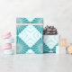 Retro 70s Aqua Geometric Circle Square Pattern Wrapping Paper