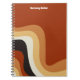 This groovy retro monogram notebook features wavy lines in tan, brown, and orange, reminiscent of the 70s and hippie lifestyle. A bold vintage gift with funky personalised white script next to the abstract curvy lines. Groove along with this fun earth tone design.