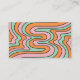 A groovy retro 70's style abstract style business card featuring eye catching abstract wavy lines, and a chunky retro typeface for your name. Colourful and bold in hues of orange, pink and green.