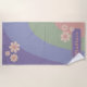Stand out on your vacation with this trendy groovy floral pastel custom name beach towel. Cool retro 70s vintage daisy and arc in purple blue green pink and cream with fun hippie style and personalised name design. Easy to use templates with custom cool groovy typography. Original artwork by artist Catherine Sweetman