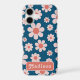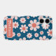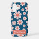 Cool retro 60s 70s vintage floral daisy pattern design in navy blue and orange. Simple floral daisies and easy to use template with custom cool groovy typography. Original artwork by artist Catherine Sweetman
