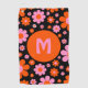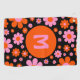 Personalised monogram initial typography in cool retro 1960s 1970s vintage boho floral daisy pattern design in striking orange and pink on a black background. Simple hippie style simple flower daisy pattern. Original artwork by artist Catherine Sweetman