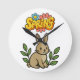 Retro 70s Spring Bunny Graphic Design Round Clock