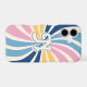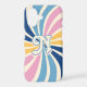 Bursting with multiple colors, the sunburst pattern phone case features a 70s, retro inspired design. The cellphone cover is ideal for accessorizing spring and summer outfits or everyday use for those who love color. Personalize it by adding a letter.