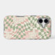 A clean vector style 9:16 aspect ratio pattern file of a retro 1970s groovy wavy checkerboard and distorted grid. The pattern fills the entire canvas with flowing, undulating sage green, blush pink, and cream colored waves that warp and distort the design. There are no other objects, borders, or frames, just the pure pattern covering the field. Simplified composition, free of complex background details, suitable as a template for phone cases, notebooks, or other print-on-demand products.