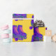 This vibrant wrapping paper features a repeating pattern of colourful retro roller skates in purple and teal on a bright yellow backdrop. Perfect for birthdays, themed parties, or any celebration that calls for a fun, nostalgic vibe with bold personality and playful energy.