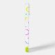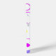 Featuring playful geometric shapes in neon pink, yellow, turquoise, and purple, it creates a fun retro vibe.