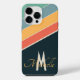 Retro 80s Navy Pink & Yellow Stripes Monogram iPhone Case