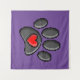Retro 80s video game 8 bit pixel art dog paw print. Custom tapestry. Purple background.